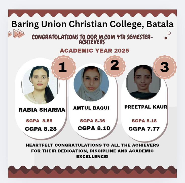 Principal Prof.(Dr.) Edward Masih, HoD Computer science and IT, Mr Narinder Singh, Prof.Harprabdeep Singh, Prof. Ashwani Kumar and Prof. Alka Bamotra while Congratulating University Merit holder(3rd Position)Jasmeen Kaur of